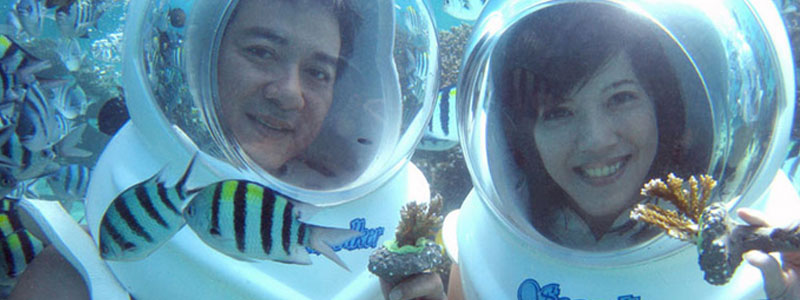 Seawalker is located at Sanur Beach, one of the richest reefs surrounding Bali. Shoals of reef fish, passing your helmet, close enough for you to touch.